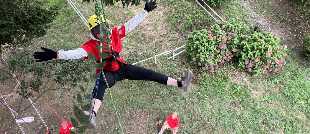 ツリークライミング®は、ロープとサドルを付けて安全に木に登るレクリエーションです。